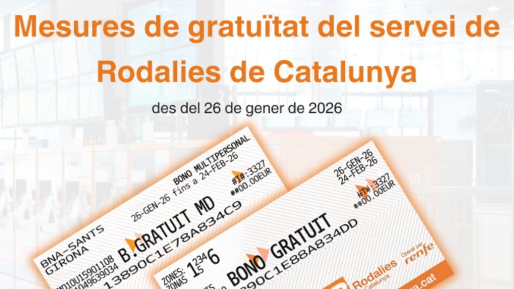 • Rodalies de Barcelona: Un abonament gratuït de 10 viatges vàlid per a qualsevol trajecte de la rodalia de Barcelona, amb una validesa de 30 dies fins al 24 de febrer o fins a esgotar els 10 viatges. Pot ser utilitzat per diverses persones.