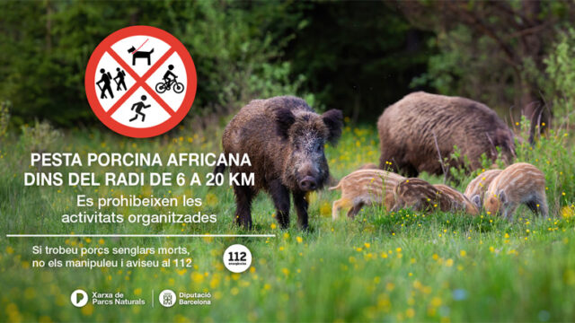 En el marc de la Xarxa de Parcs Naturals de la Diputació de Barcelona, diversos parcs estan subjectes a aquestes restriccions, incloent el Parc Natural de la Serra de Collserola i el Parc Natural de Sant Llorenç del Munt i l’Obac. Les autoritats han establert una zona infectada d’alts riscos que compren dotze municipis i prohibiran l’entrada dins del radi de 0 a 6 quilòmetres, mentre que les activitats de grup estan restringides en el rang de 6 a 20 quilòmetres.