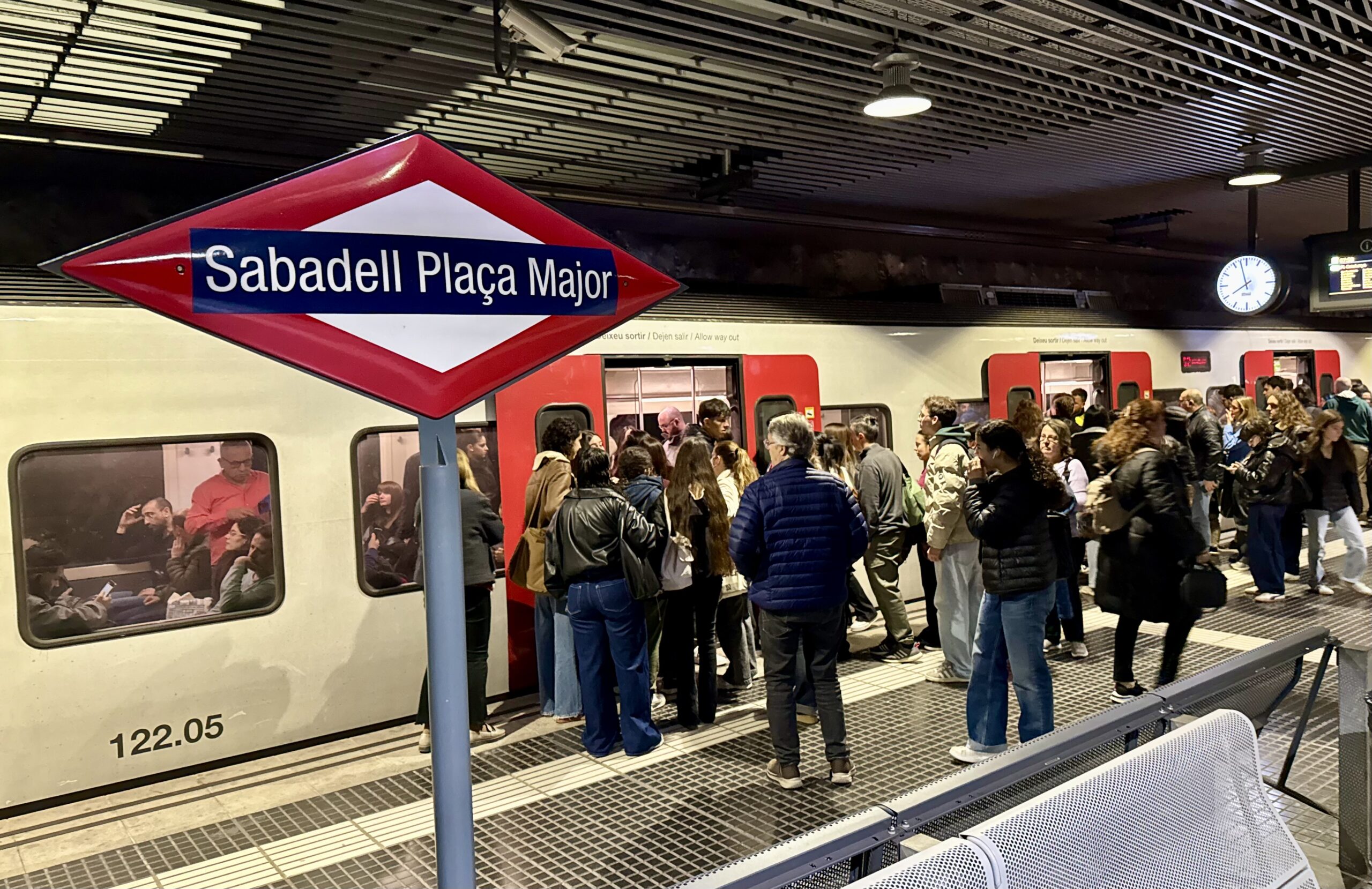 ACN Sabadell – La primera de les cinc jornades de vaga a FGC convocades pel sindicat Semaf ha arrencat a l’estació de Sabadell Plaça Major amb andanes i trens plens en moments puntuals del matí. Tot i que els serveis mínims del 50% en hora punta s’han complert amb normalitat segons l’operadora, entre les vuit i dos quarts de nou alguns trens anaven tant plens que molts usuaris optaven per agafar-ne el següent. En Joan Serrat, per exemple, que havia d’agafar el tren a Sant Quirze del Vallès per anar a Barcelona ha optat per anar a Sabadell perquè els trens que arribaven cada 15 minuts anaven “fins dalt de gent”. “Aquí també van plens, però a Sant Quirze era impossible pujar”, explicava lamentant que les vagues “també hagin arribat a FGC”.