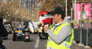 Els taxistes tallen els carrils centrals de la Gran Via per...