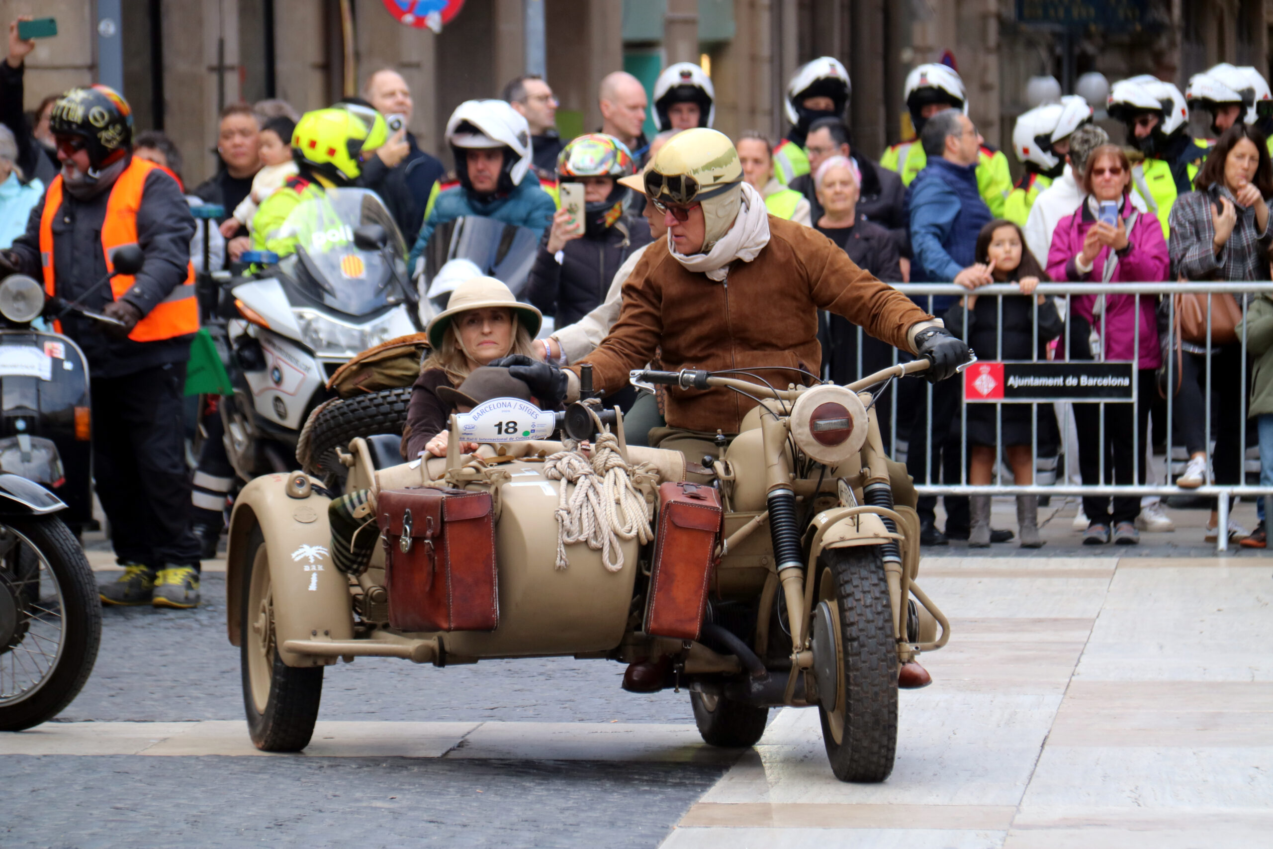 ACN Barcelona – La plaça Sant Jaume de Barcelona s’ha convertit aquest diumenge en un escenari dels inicis del segle XX amb la sortida del 68è Ral·li Internacional de Cotxes d’Època Barcelona-Sitges. Una setantena de cotxes i motocicletes fabricats abans del 1928 han participat en aquesta cita històrica, que cada any transforma el centre de la capital catalana en una postal viva del passat. Fidels a la tradició, conductors i passatgers han lluït indumentària d’època per recrear l’ambient social i estètic dels anys en què van ser construïts els vehicles. El fum característic i el so metàl·lic dels motors centenaris han atret l’atenció de veïns i curiosos, que s’han aturat per fotografiar unes peces que habitualment no poden circular per la ciutat.