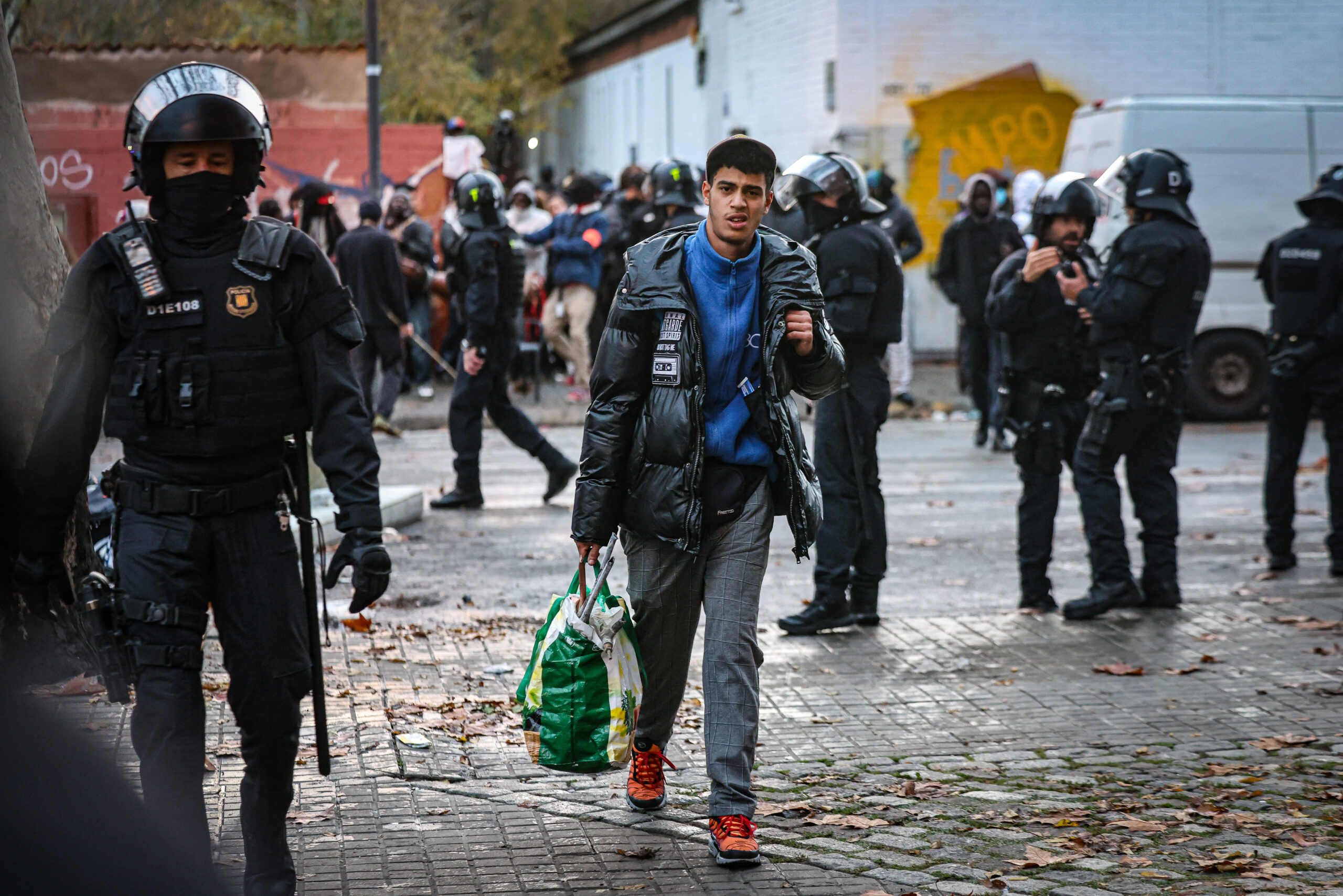 17 de desembre Els Mossos d’Esquadra desallotgen per ordre judicial l’antic institut B9 de Badalona. L’espai es va ocupar el 2023 i en aquests anys hi ha arribat a malviure uns 400 migrants. Darrerament, el B9 s’havia convertit en un focus de conflictivitat, amb casos de baralles, robatoris o drogues, un brot de tuberculosi i, fins i tot, un assassinat. L’Ajuntament, propietari de l’immoble, volia recuperar el solar per fer-hi, en el futur, una nova comissaria de la Guàrdia Urbana a la zona sud de la ciutat. A més, l’alcalde, Xavier Garcia Albiol s’havia mostrat molt contundent contra el col·lectiu d’ocupes i diu públicament que els vol fer fora de la ciutat. Els dies posteriors, un gruix de les persones desallotjades acampen a la ciutat i es produeixen moments de tensió amb la policia. Davant la inacció del consistori per oferir una alternativa d’emergència als desallotjats, la Generalitat i les entitats socials intenten mobilitzar-se, però els recursos no arriben per a tothom.