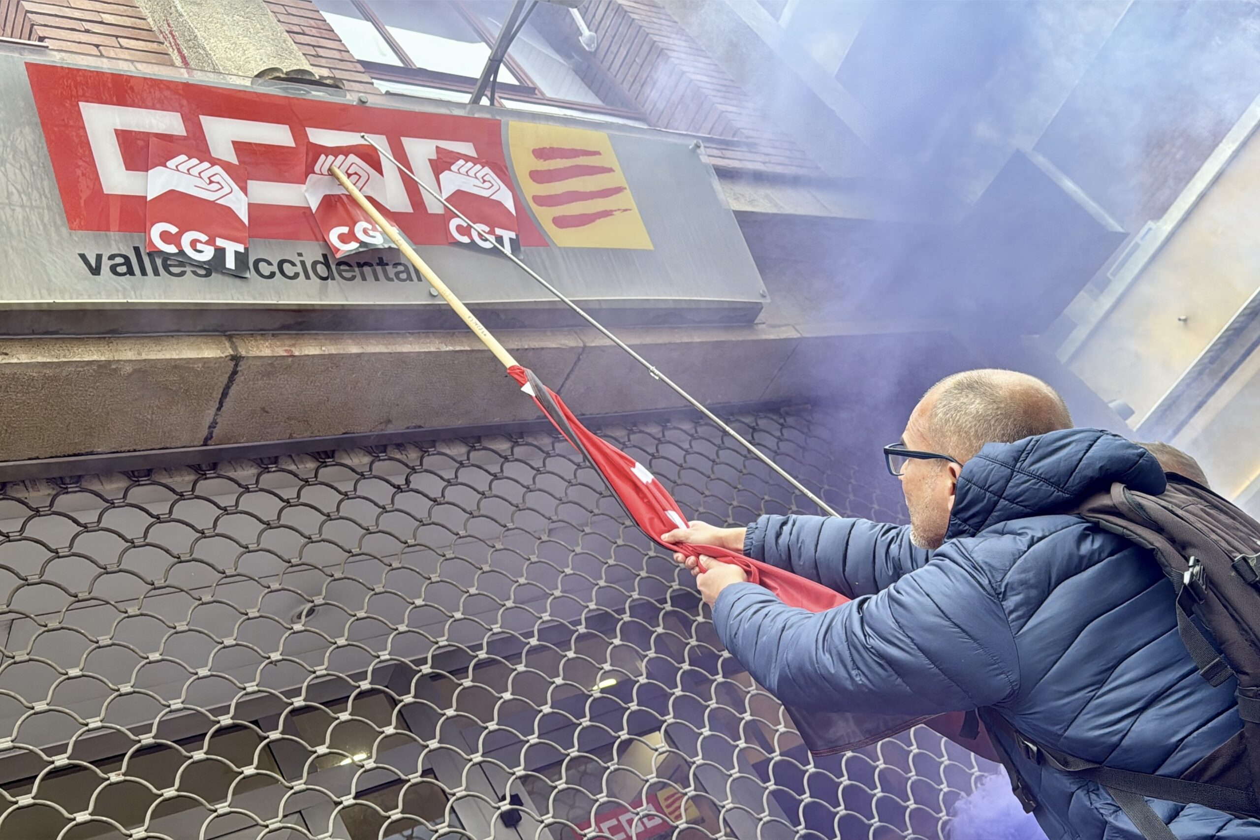 Un bon grapat d’integrants de la protesta s’han desplaçat posteriorment a la Rambla de Sabadell, on UGT i CCOO tenen les seves seus. Quan ho han fet, els Mossos d’Esquadra ja havien arribat abans per advertir-los i instar-los a abaixar persianes i tancar finestres.