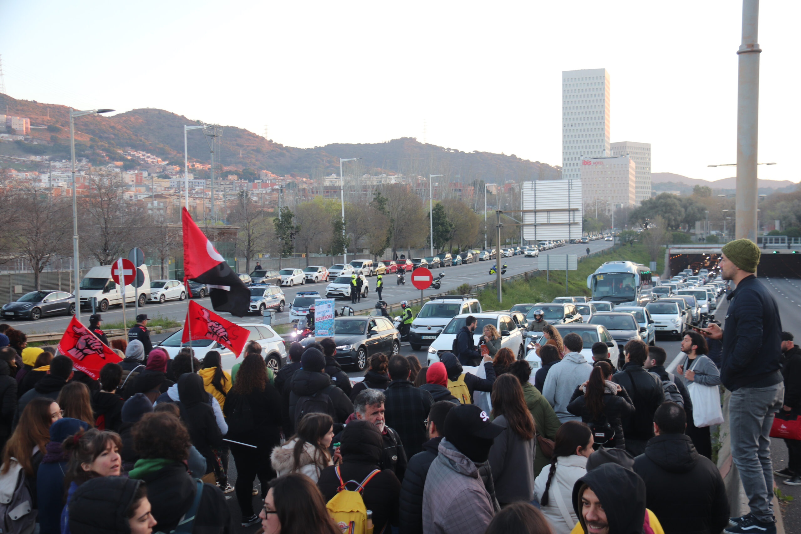ACN Barcelona – Uns 400 docents tallen la ronda de Dalt a Santa Coloma de Gramenet i uns 200 més ho fan en la mateixa via a Barcelona a l’altura de Vall d’Hebron aquest divendres al matí, cinquè dia de vaga del col·lectiu. En els dos casos el tall és en els dos sentits de la marxa. A Santa Coloma, els manifestants han quedat a prop d’un hotel de la ciutat i han caminat ràpidament fins a tallar la B-20, just abans del nus de la Trinitat. A Barcelona, els manifestants s’han desplaçat en metro i han baixat a Montbau, des d’on han iniciat el tall. Aquest divendres estan cridats a la vaga els docents de tot Catalunya, tant de la pública com de la concertada, així com personal d’atenció educativa, d’administració i serveis i del lleure educatiu.