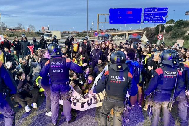 ACN Mataró – Desenes de professors en vaga han tallat aquest dimecres cap a dos quarts de vuit la C-32 en direcció Barcelona a l’altura de Mataró, en plena hora punta. El tall ha durat mitja hora, fins a les 8. Els Mossos d’Esquadra havien muntat un ampli dispositiu per impedir-ho amb vehicles dels antiavalots a tots els accessos a l’autopista i s’han viscut moments de tensió amb cops de porra dels agents cap als manifestants. Els mestres han saltat finalment per un terraplè per accedir a la via i portar a terme l’acció de protesta que planejaven. Havien quedat a les set del matí a l’aparcament del centre comercial Mataró Parc.