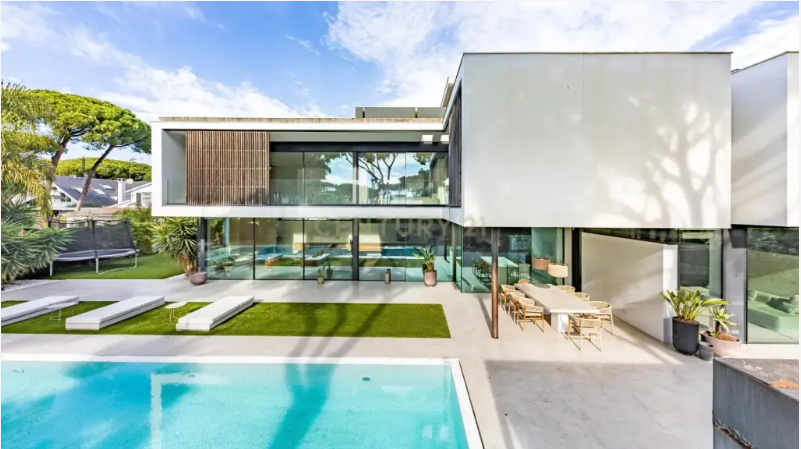 A l’exterior, el jardí s’ha organitzat com un veritable oasi privat amb piscina, zona de descans i un bar exterior totalment equipat, ideal per a reunions socials i activitats durant l’estiu. Aquest espai exterior, juntament amb la proximitat de la platja i la tranquil·litat de l’entorn, converteixen la mansió en un lloc molt desitjat per a famílies de perfil alt.