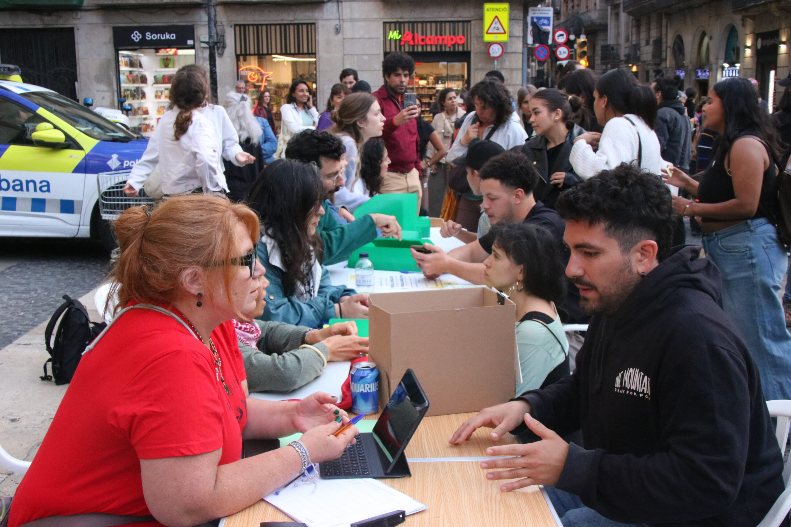 La plataforma Regularització Ja munta unes taules a plaça Sant Jaume de Barcelona per assessorar immigrants