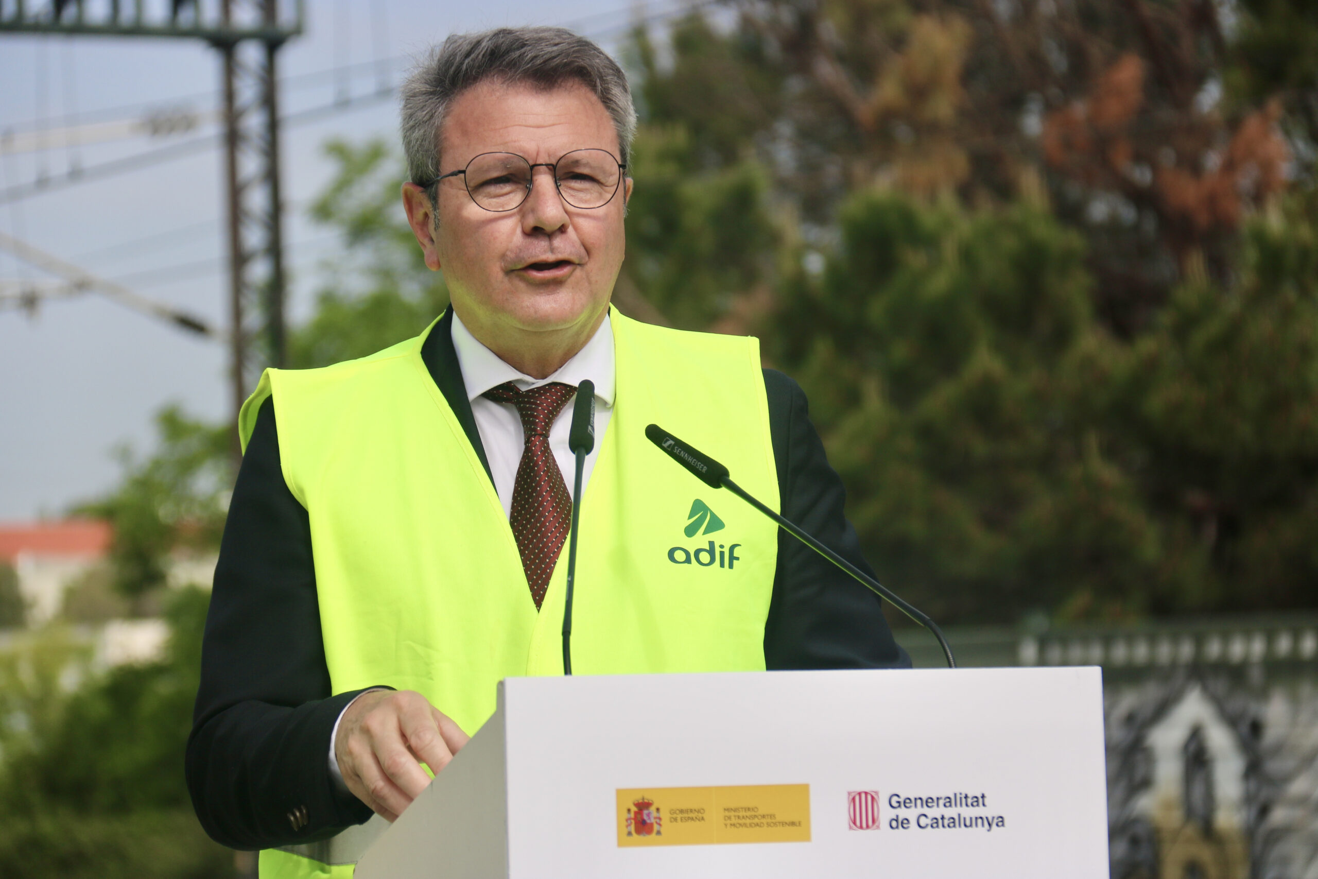 Santano ha visitat els treballs que s’estan duent a terme a peu de via, juntament amb Paneque, que han arribat just quan arribava un tren de mercaderies procedent de Barcelona. Després d’una parada tècnica, el tren ha seguit el seu recorregut, endinsant-se en el túnel, operatiu en via única des de dimecres.