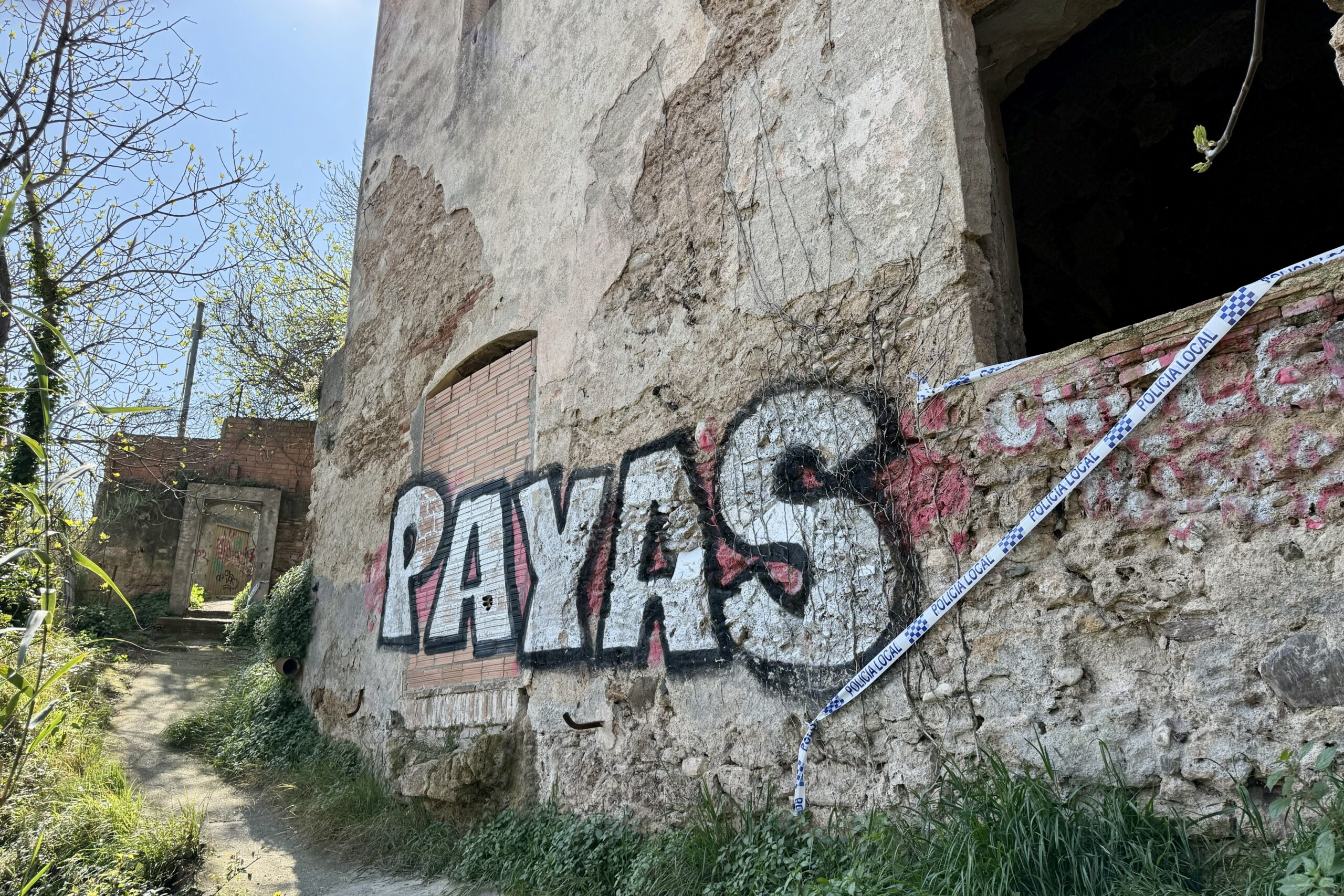 Donat que el seu estat és ruïnós, l’immoble està tancat i barrat, amb cadenes i fins i tot cinta policial que indica que no és un espai segur i, per tant, en prohibeix l’accés a tothom.