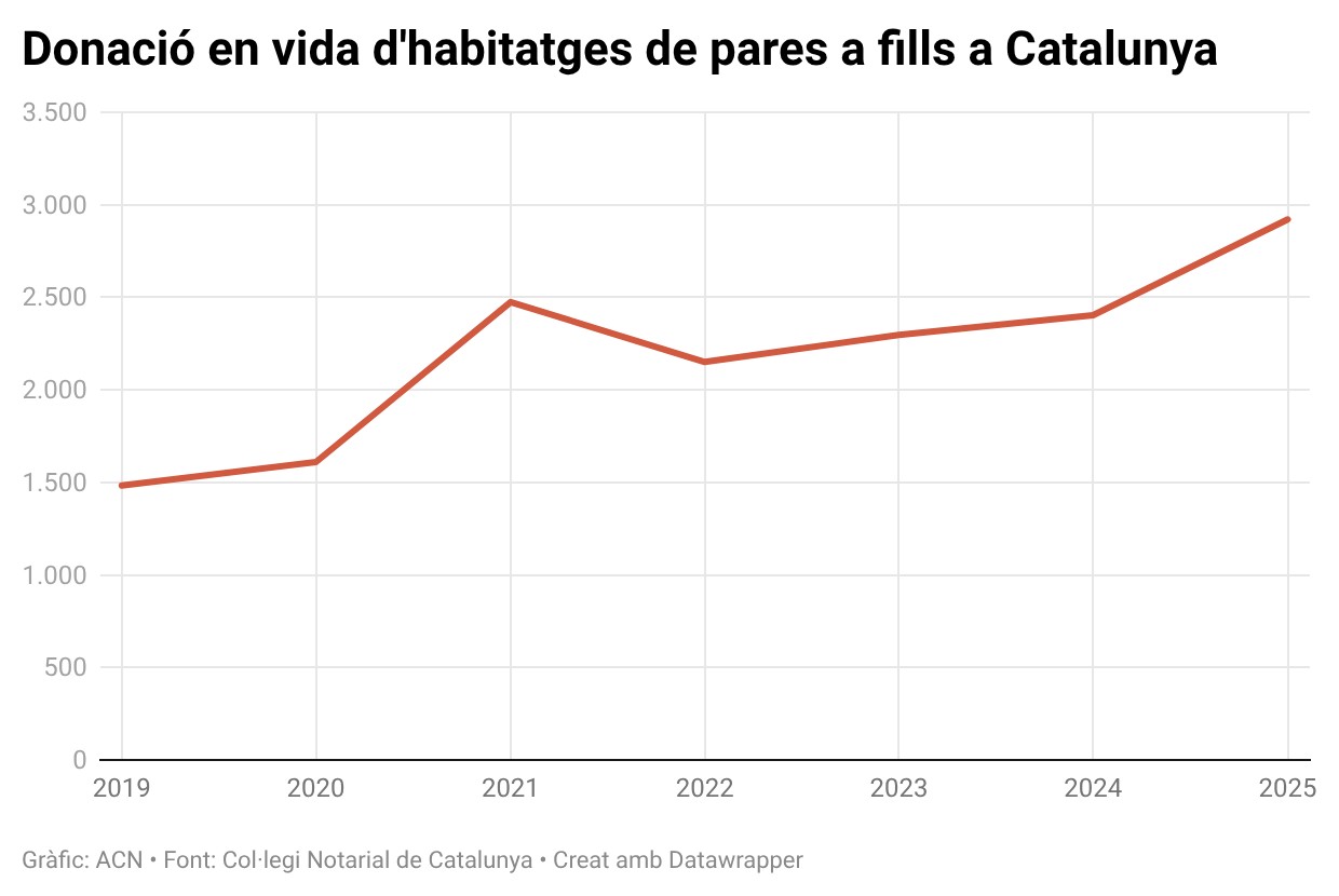 Aquest augment del 96% de les donacions en vida entre el 2025 i el 2019 reflecteix el pes creixement del suport familiar en el cas de les famílies que s’ho poden permetre perquè tenen actius immobiliaris. “Això afecta només els que tenen la sort que els seus pares els poden donar un habitatge però els que no, que són la majoria, tenen una autèntica dificultat pels joves. Per això és important centrar les polítiques d’habitatge en ells: el finançament, l’habitatge protegit, etc”, ha afirmat el director del Centre Tecnològic del Notariat, Albert Martínez Lacambra.