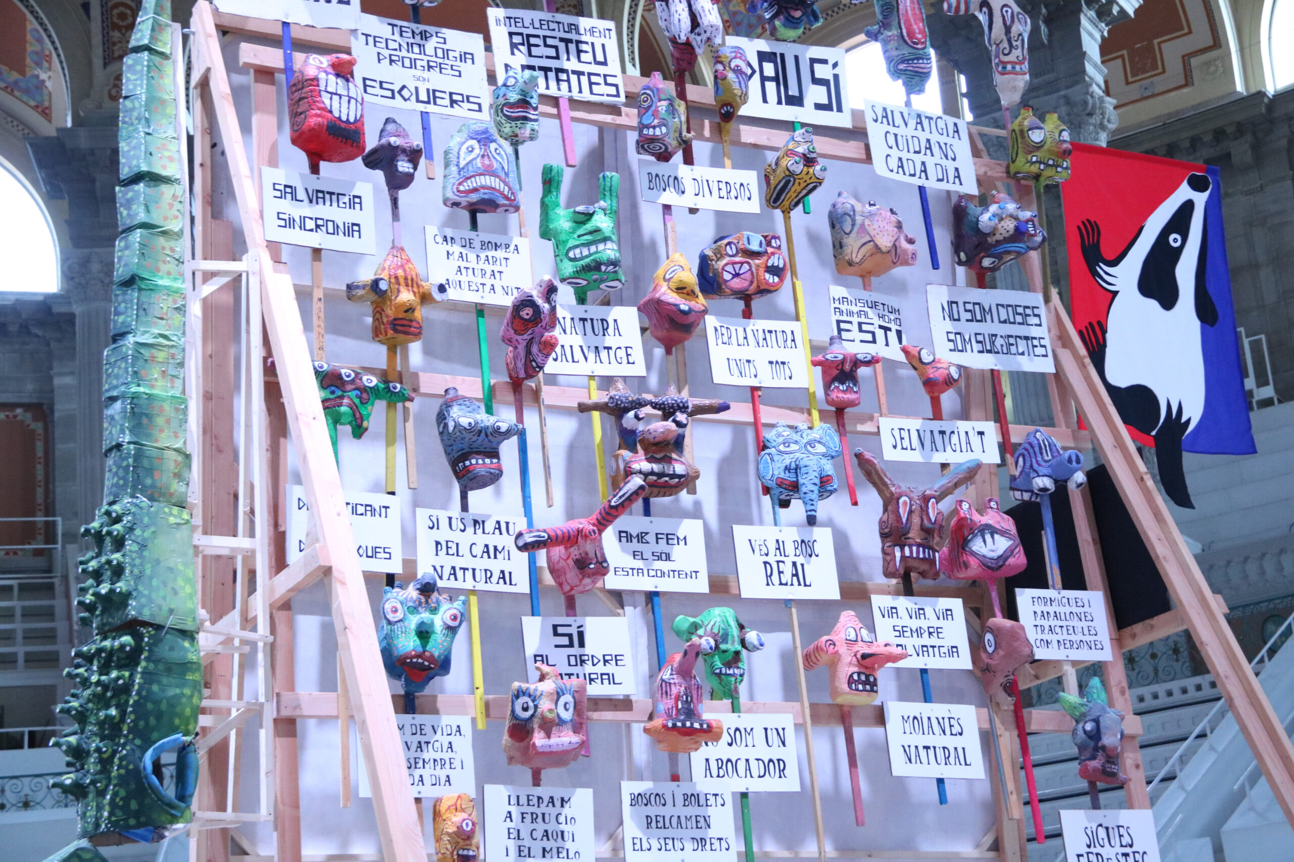 ACN Barcelona – El MNAC ha presentat aquest divendres la nova instal·lació de Marcel·lí Antúnez ‘Natura Centrum Est. Campament Oval’, una proposta que reivindica la natura, l’ecologisme i la vida agrària. L’artista crea una experiència radical i colpidora a través d’una quinzena de treballs de diferents col·lectius per denunciar el capitalisme i recuperar la “salvatgia”. “És un intent d’utilitzar l’art com a propaganda per tornar a posar la natura al centre de tot”, diu Antúnez sobre la mostra. L’exposició, que es podrà veure del 20 de desembre al 6 de gener a la Sala Oval del museu, comptarà sessions performatives on músics i artistes escenificaran protestes populars.