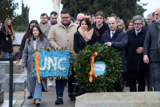 El líder dels juntaires ha explicat que en el marc de l’ofrena el partit ha tingut un record per als seus “exiliats”, i ha indicat que tant Macià com Pompeu Fabra, que va morir a l’exili “són no un record, sinó un referent, un far del qual ens sentim hereus”. “És en ells que ens fixem, en el seu llegat, la seva acció política i la seva actitud”.