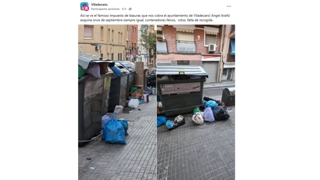 La situació dels contenidors de residus a Viladecans ha tornat a generar indignació entre els veïns, que denuncien l’acumulació constant de deixalles fora dels punts habilitats i la manca de recollida eficient per part dels serveis municipals. Les imatges difoses a les xarxes socials mostren bosses d’escombraries amuntegades a la via pública, amb contenidors desbordats i brutícia escampada pels carrers.